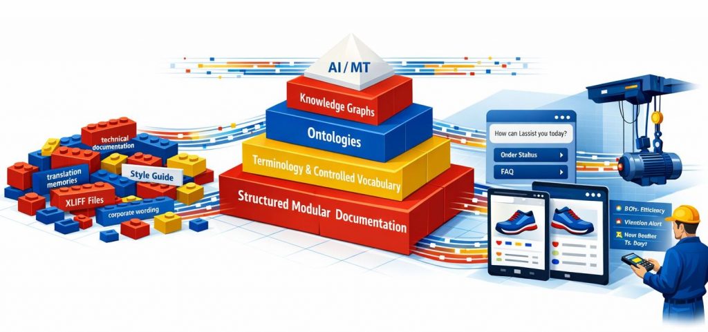 NEW Language Solutions explores how organizations can turn scattered language assets into governed, interoperable foundations for content, knowledge, and AI‑supported workflows. Together, we discover your language resources already in use — corporate wording, technical content, terminology, and translation assets — and explore how they can be shaped into structured, modular documentation and information, taxonomies, ontologies, and knowledge graphs. We share these methods and outcomes openly with the language community and industry to advance collective understanding — and to highlight the essential role of linguists in building intelligent systems.